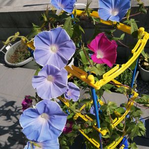 娘の小学校で育てている朝顔。 夏休みは持って帰って家で育てて観察。 花が沢山咲いてきた☺️ 名前もつけるらしい「あさちゃん」 名前をつけると愛着湧くのかな? 私が小学生の時は全部枯らしてた😵 お花は摘みとって冷凍庫保存。 夏休み終わったら朝顔の花で色水遊びを小学校でやるみたいなので。 大人になると忘れてしまうのか、何もかも思い出せない😅
