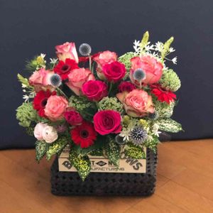 大人っぽくて豪華に見える(かな?)アレンジメントを作ってみました〜(^^) 器は、キャンドウの木箱です。