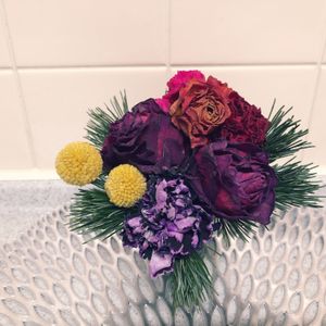 お正月から北向き洗面所に置いたお花にうっかり水あげるの忘れていたら、半生だけれど いい感じのドライフラワーになってました〜(=´∀`)