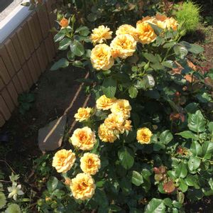 4月に鉢から地面に植え替えた4年目のアンバークイーン 急激に大きくなって花をどんどこ咲かせてます♡大地パワーすごい