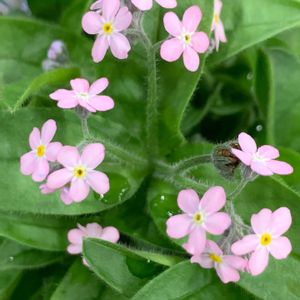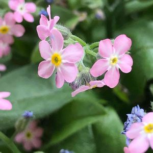 おはようございます☀ 雨上がりの「ワスレナグサ」が 多彩に咲いてます💙💗 忘れている事あったら 思い出してみましょうね🤔