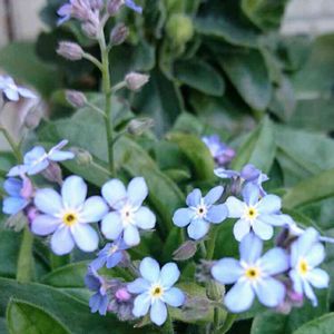 優しい色の忘れな草♡ 毎年秋に種を撒いて育てています♪ 日陰だと茎も緑で、お花の色も薄いブルー♡