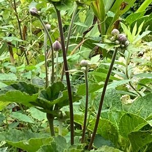 ボッサボサぐちゃぐちゃのお庭の中で蕾を上げる秋明菊😅 秋はすぐそこに♪♪