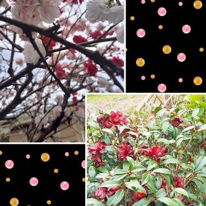 桜を見に行ったら、観光客慣れしたおじさんが『これ黒椿』『うちの花桃見ていって』と雑草だらけの庭に連れていかれた😓 黒椿初めて見ました。暗かったので明るさ調節してます。 折角なので投稿します🎵