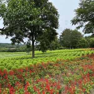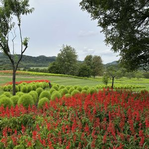 サルビアとコキア。 10月に真っ赤っかになったらまた来よう😌緑のコキアも素敵でした🟢 夏休み。一昨日家族は皆仕事だったので1人ドライブで1時間半の由仁へ。約20年前、息子と野球のチームメイトを乗せて送り迎えした懐かしの道を通って☺️