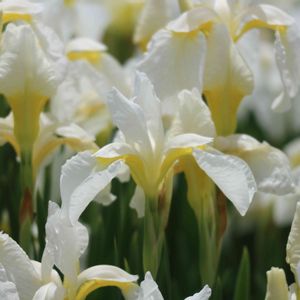 花散歩💚💚 青~紫色に網目模様が特徴的なのがアヤメだけど、シロアヤメは潔白で純粋な印象ですね。 花言葉:「あなたを大事にします」