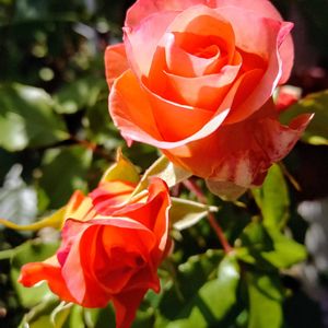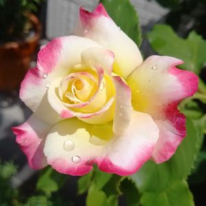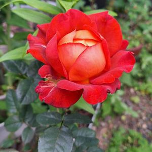 薔薇🌹クローネンブルグ 今年最初の薔薇が咲きました。テンション上がります。💗😊 去年咲いた時より一回りほど大きく咲いています。 蕾から開く課程が待ち遠しくて…やっと大きく咲いてくれました。🎶✨💞 花径15㎝ 花色 複色 表弁…赤 裏弁…黄色味を帯びる 花型 半剣弁盃状咲き 花弁数 45枚 四季咲き 名花ピースの枝変わり品種 作出国 フランス