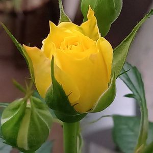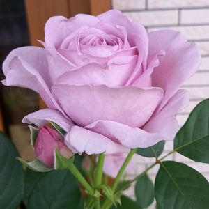 バラが咲いたよ 夜間の雨が止んで、朝からお天気が回復しました。 カトリーヌドゥヌーブの蕾が膨らんできました。伝説のフランス?の女優さんの名前がよく似合いますね。