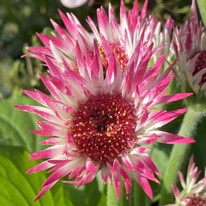 ᰔᩚ ᥫᩣ ①②ガーベラ スパイダー咲き ガーベラでは初の夏冬越し出来ました🙌もう可愛い🤗♥️ ③星咲フロックス こぼれ種から 小さく咲いて可愛いお花 ④ナデシコロックンレッド 久しぶりに開花して来ました 蕾がドンドン上がってきています ⑤ハナキリン 今朝の空〰️ お天気回復