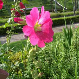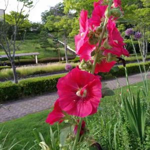 おはようございます😊 今日も雨☔です。 コミュニティガーデンにて タチアオイ咲いています🌼 令和元年6月28日 撮影