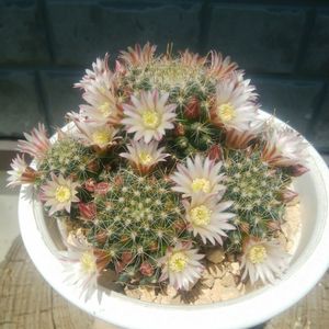 お外に一年中置きっぱなししている 暑さ寒さにも強くて丈夫な 私の家のサボテン 七々子丸ちゃん🌵 なんと❣️ 今日見たら、 お花が何個か咲いていました🌸 七々子丸ちゃんのお花は とても可愛いくて好き✨ よく見ると花びらにピンクのラインが入っているところがあったりして、 お洒落さんです✨ 蕾がまだまだついているので これから暫くの間は お花が楽しめそうです🌸