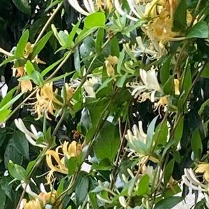 ご近所さんのところのスイカズラいつのまにか いっぱい咲いていました。
