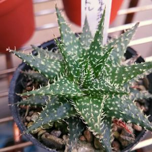 今日のお迎え多肉植物その2。アロエとハオルチアの交配だそうで。トゲトゲが新鮮でお迎えしました。