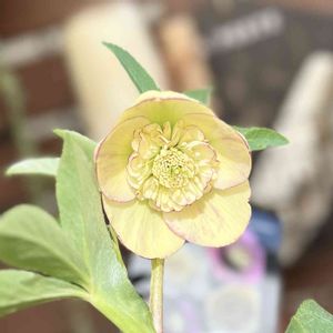 初めてのクリスマスローズです🌸 八重で蕾があと2個膨らんで 優しい色合いに惹かれて連れ帰ってしまいました💕 クリスマスローズはとっても丈夫という事で鉢植で挑戦します🎶 小野寺園芸さん