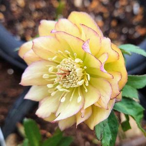 クリスマスローズ ダブルイエロー 2020年秋.幼苗をコメリ購入。 ダブルイエローってタグについてたけど咲いたらセミダブルで糸ピコでラッキー✌︎('ω'✌︎ )✨セミダブル大好き😘💕