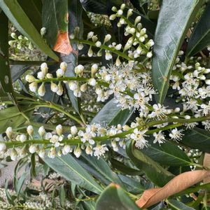 セイヨウバクチノキ バラ科 バクチノキ属 分布 ヨーロッパ東南部 アジア中部の 暖帯〜亜熱帯 本州の関東以南 四国 九州 沖縄 で植栽される 常緑低木 小高木 2021.4.10 のpic の名前判明!!