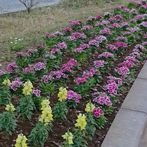 今日は 。 日射し、今強いです。 金魚草?と撫子のコラボが、視られました❗。 投稿します 。 市川駅南口 🍀 🌦️ 🎼 🐦 🎵 🍀