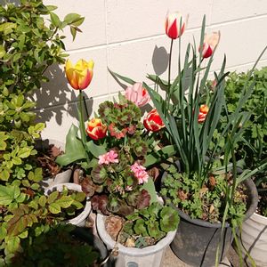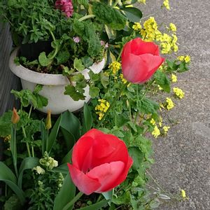 駅からの、帰り道 、鉢植のチューリップ見付けました!!。 見渡せば、花、華、花です。 「春爛漫」です。 🍀 🌺 🍀