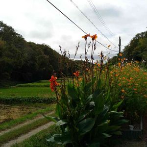 こんにちは~😊 いつもの散歩道🚶🚶🚶 カンナにキバナコスモスが咲いていました💛 2021.10.13 📷