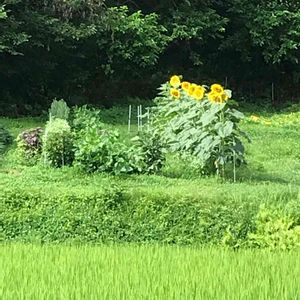 通勤途中の朝☀️🌻見て元気もらってます🤗整列❓‼️ 今までだったら気付かなかったかも❗️GS始めて周りの景色を👀ようになったおかげです☺️ もっと近づきたかったけど猪🐗避けの柵があって行けない😅😅😅