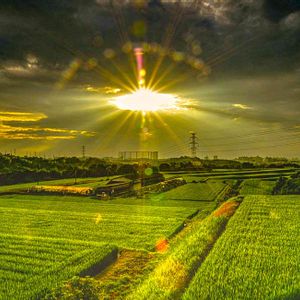 大阪府堺市 田園風景🤗🤗 雨が降りそうなくらいの雲の隙間からの太陽の光が…🤗🤗 ちょっと珍しい光景です🤗🤗 過去picです🤗🤗