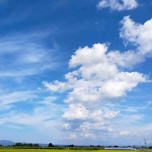 日曜の昼下りの🈳 車窓から… 8月も今日でおしまい 夏雲が見られるのももうあと僅か…でしょうか🌞 長閑な田園風景と広がる青空(*˘︶˘*).。*💙 稲穂も少しずつ黄金色に実ってきているようです🌾 過ぎゆく夏の名残りの雲たち…✨✨ 🏷雲仲間さん 参加させていただきます🌤 (🌾北津軽の田園風景🌾)
