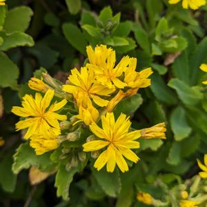 今日、2つめの投稿です。 ☆ 西伊豆にて ①〜③ アゼトウナ 海沿いの、あちらこちらで見ました。 岩と岩の間からも生えてます。 花だけを見ると、ヤクシソウ等と似てます。 でも葉が分厚い🔍️ 調べて、この花だと分かりました。 ツワブキやイソギク等も含め、黄色い花が鮮やかな海沿い散策でした💛 ④⑤ ヒロハフウリンホオズキ 海側から少し内側に入った遊歩道の脇。 花友さんの投稿で見ていた花を見つけました \(^o^)/ 花も実も可愛い♡ 袋状の実には、縦に10本の稜があります。 ⑤⬇️ちょうど実が帽子を被るような感じで…… うつむいた花がありました。 ①③ 沢田公園の辺り ② 黄金崎公園の辺り ④⑤ 堂ヶ島の遊歩道にて いずれも11月12日