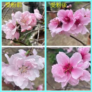 淡いピンクだった桃の花が受粉して濃いピンクになりました☺️
