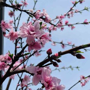 桃の花が咲き始めました☺️ 朝には1輪だけ開いていた桃の花が昼過ぎには10輪程開きました。