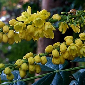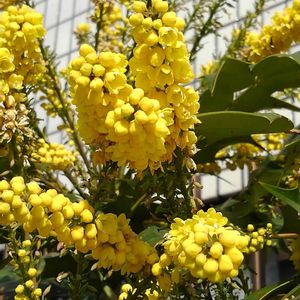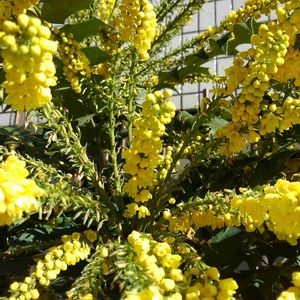 セイヨウヒイラギナンテンの 黄色い花が満開 公園は花の少ない季節ですが、 ここだけは華やか