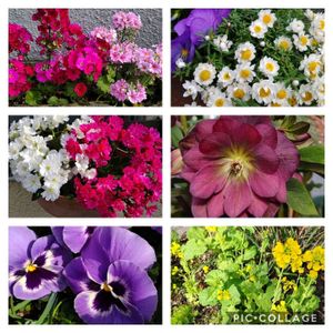 今朝 ( 7日9時8分頃に ) 見掛けた 花々 🌼💠💮🌱 ① ↖️ プリムラ・マラコイデス ② ↗️ 花かんざし ③ ← レウィシア・コチレドン ④ → クリスマスローズ 🌼 ⑤ ↙️ パンジー 💠 ⑥ ↘️ 菜の花 🌿☘️ 名古屋市中区にて スマホ📱 撮影💮🌱