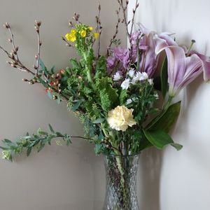 お正月を迎えるため、お花を生けました🎍 ユリ、菜の花、南天です☺️