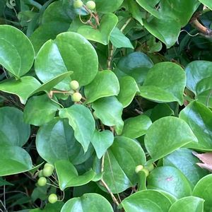 12月2日 今日のお花 🌿🟢🔴🌿サルトリイバラ🌿🔴🟢🌿 サルトリイバラの葉は、サンキライ(山帰来)、餅草、がめの葉**イバラモチ**などの別名があります。特に西日本では、柏餅の代わりにこの葉で餅を包む習慣があり、「イバラ餅」と呼ばれることもあります。