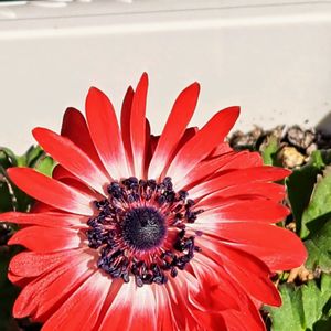 球根から育てているアネモネ 赤が咲きました ちょうどよいタイミングを 見逃して開ききってますが、 綺麗な赤で可愛い