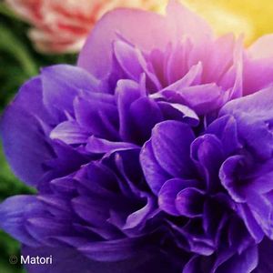 アネモネ 凜々花 窓越し逆光📸 自分がいつも選ばない色を あえて選んでみました。
