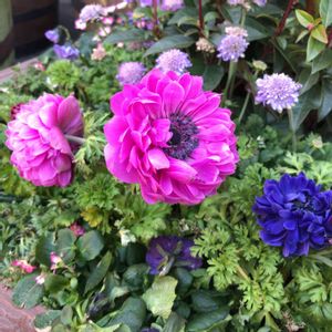 近所の園芸屋さんにて📷 この花びらが多いアネモネさん、可愛いけど、散り際の片付けが大変だったのよね😓 八重咲きの品種名は…分かりません💦