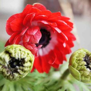 こんにちは〜(๑>◡<๑) 皆様の所は荒れ模様では無いですか⁉️ 我が家は嵐真っ只中です🌪☔️ 南風が吹き付け、雨が吹き付け😱 多肉さん達びしょ濡れです🤣 電動シャッターが欲しいね😵 さてこちらは八重咲きアネモネさん💕 2番花さん達が上がってきました❣️ いつ開くだろう⁉️ 蕊の群青に惚れ惚れです(*´ω`*)💕💕 とりあえず現実逃避ちうです(〃ω〃)へへっ