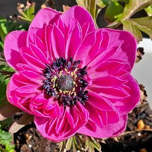 *アネモネ 八重* たくさん植えた球根のアネモネさんたちにも、ちらほら蕾が見えてきましたが、待ちきれず開花株をお迎えしてしまいました😊