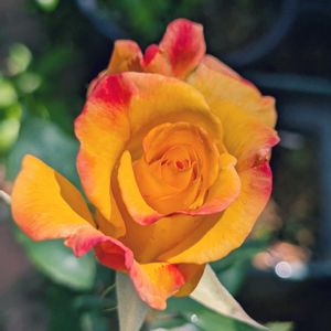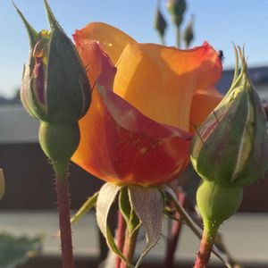 薔薇「リオ・サンバ」 アメリカ生まれのバラ🌹 花のかたちが美しく、色は黄色→オレンジ→朱色へと変化するそうです(@_@;) 花言葉は「燃える情熱」「勇敢」「華麗」「栄光」です