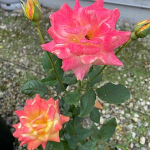 こちらも今朝の薔薇のpicです😄 上、オクラホマ。 実際には、写真より黒く見えます😊 下、リオサンバ。 咲き始めのオレンジからピンクに変わるまで、1列に並んでました😄