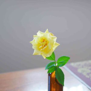 薔薇の剪定枝を挿しておいたら、咲いてくれました😃 一輪だけでしたし、ある意味新苗相当なのでカットして水挿しに。 派手さの無いリオサンバです😆