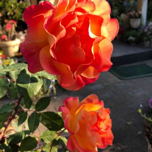 こんばんは🌆 リオサンバさん、色合いが変化してます😃🎶 左上から時計回りに変化の過程です^ - ^♡ 右上は、お部屋に✂️して飾ったので色合いが黄色そのままです。お外で日に当たると徐々に黄色からオレンジに変わって行きます。 まるでリオのカーニバルみたいに❣️日差しを浴びると情熱的なオレンジに🧡🧡🧡 素敵な薔薇です🧡🧡🧡 ゴメンなさい🙇♀️🙇♀️ 下のpic右と左が逆でした(⌒-⌒; ) 最終的にオレンジ色に変わります🧡🧡🧡