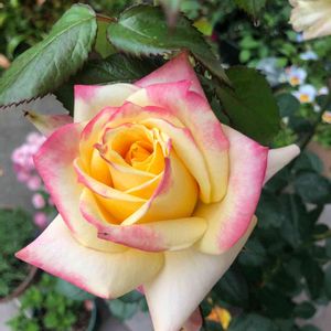 真夏日になるらしい〜〜☀️ 朝から半袖で🙆♀️な気温 そんな日にぴったりのバラが咲きました〜〜💛 リオサンバ🌟 黄色に朱の覆輪が入ってます 今年も元気いっぱいです(*//艸//)💛