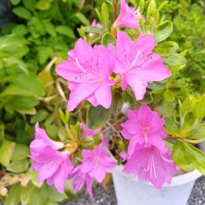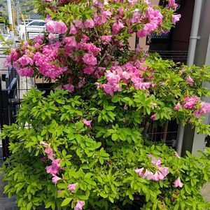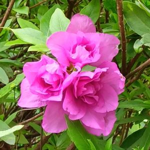 ツツジが次々に咲いています 名前は? 紫がかったピンクのお花 バラのようです 剪定し過ぎ? お花の数は少ないですが いつもより大きな豪華なお花が見られました😊 3枚目は蕾の時投稿したシャクナゲツツジです