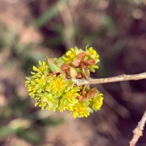 🌨❄雪の降る我が森 川沿いチョロっと散策 何度も観察👀 アブラチャン?? ダンコウバイ?? 近くにはグリーンの花の子も🙆😅🤣😂サー こうなってくると 何? ナニ なに…💧💦 クロモジ属には違いない😸😆😸😆😸 わかる方教えてくださっい(*^^*)よろしくお願いします✾ 葉っぱ楕円 3つに割れてるのやら 花色も🟩💛… 🍂🍂枯れ葉色の世界に やっと春が⋆.˚⊹⁺ꕤ…˖*🤗