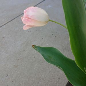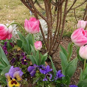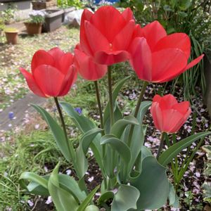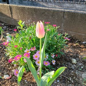 去年は花が咲かなかったので、あまり期待せず植えてたらこんなに可愛いチューリップが咲きました😊 左横の球根は葉っぱが一枚だけ生えてきました🤣見えるかな