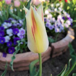 過去Picより「🌷」⑤ in 福岡市 「キララ」 〈余談〉 新潟大学農学部で開発された🌷だそうで… うっすらと黄緑がかった白色に優しくピンクの入る 上品な印象の🌷。