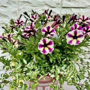 梅雨に入ったのに… 今週は真夏日の予報です🔆(˃͈ દ ˂͈ ٥)💦 切り戻し後咲いてくれました⋆⸜♡⸝⋆ ①ペチュニア アマゾナスプラムコカトゥー ②ペチュニア ピスタチオパフェ
