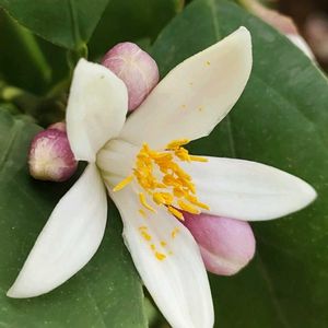 今日のお花✾ 💛レモン💛 去年咲いた 我が家の鉢植え“菊池レモン”のお花です😊💛 そろそろ10年選手🌟 ❺去年は30個の収穫でした🍋🍋🍋🌈💕