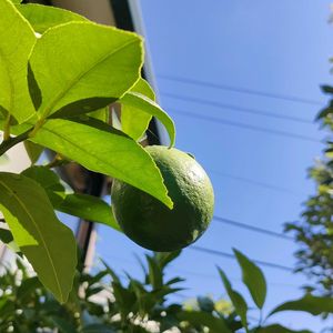 レモン観察2025🍋 台風もどきが過ぎ去り 昨日から爽やかな青空が広がっています☀🪩 日中は猛暑日に迫る気温ですが 朝晩は随分涼しく感じるようになりました🍃 前回のレモン観察からひと月以上が経ち 随分と実が膨らんできました😊 今シーズンは雨が少なく 毎日の水遣りが欠かせません。 随分と受粉しましたが生理落果も多く 20個程度(何度数えても個数が合わないので😅)に落ち着きました。